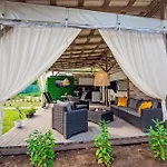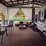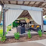 Denne campingplads har udsigt over haven og også et opholdsområde og klimaanlæg på værelserne.